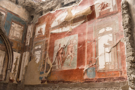 Frescos in a house of the Herculaneum excavation, Naples, Italy