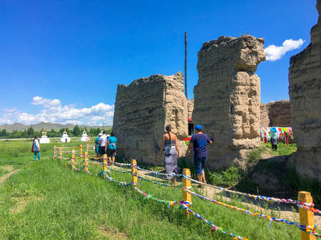 Kharkhorin, Mongolia, August 22, 2006 - People visit Erdene Zuu monastery in Kharkhorin, Mongolia. Erdene Zuu monastery is a UNESCO World Heritage site.