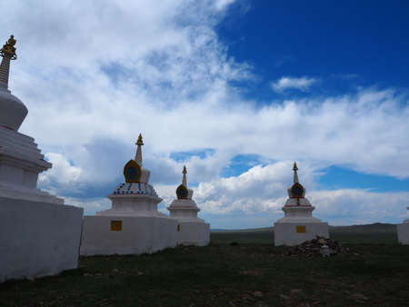 Color image of a Buddhist stupa at a monastery in Mongolia.