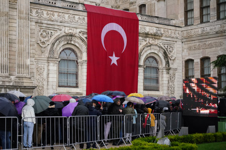 ISTANBUL, TURKIYE - NOVEMBER 10, 2024: People visit Dolmabahce Palace during 10 November Ataturk Commemoration Day