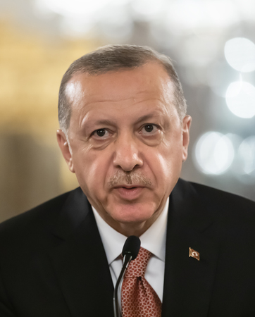 Istanbul, Turkey - Nov 03, 2018: Turkish President Recep Tayyip Erdogan during a meeting with President of Ukraine Petro Poroshenko