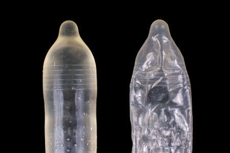 purple vibrator for pleasure,condom on jeans background.ready for use.
