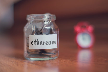 Digital currency physical ethereum coin. Cryptocurrency concept.
