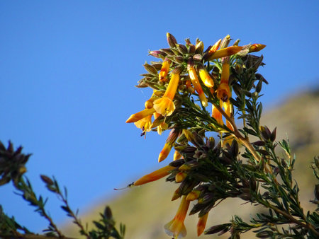 Texas Barometer Bush, Flower blossom with blue sky background