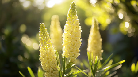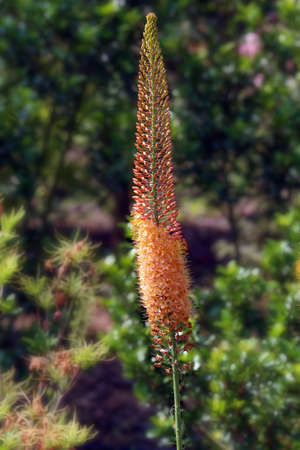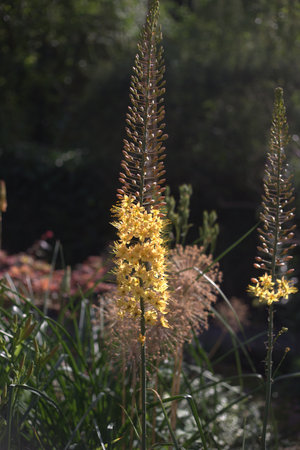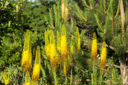 Eremurus × isabellinus. Blooming In golden sunshine in a beautiful garden