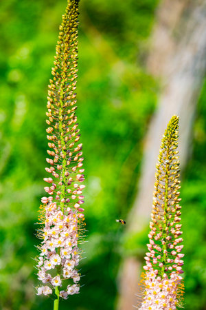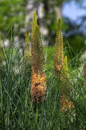 Eremurus isabellinus pinocchio cleopatra flowering ornamental plant, beautiful pink orange foxtail lily flowers in bloom, Desert Candle flower