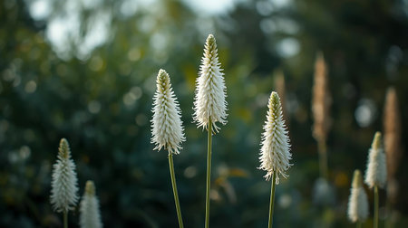 Bright white inflorescences of Eremurus in the summer garden, Greece.