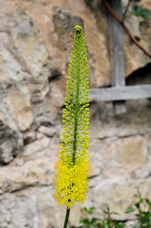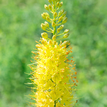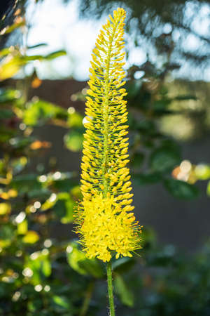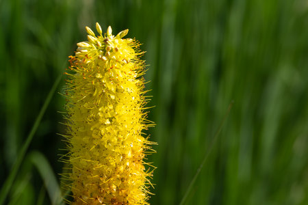 Yellow blooming fluffy flower eremurus close up on a sunny day