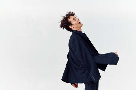 business man curly hair black jacket emotions Studio
