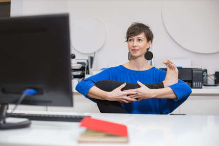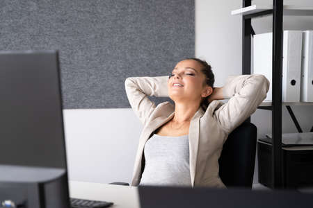 Stretching Office Workout. Desk Stretch Exercise At Workplace