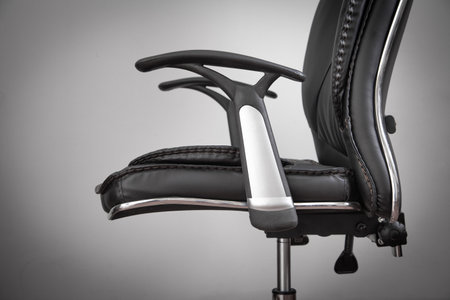 Black leather office chair in gray background.