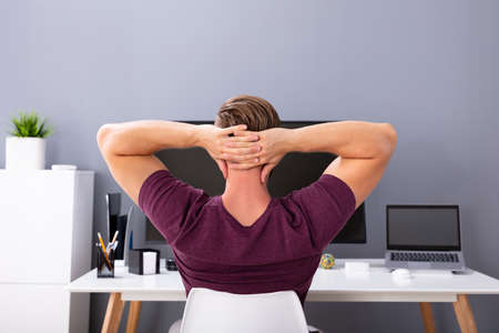Close-up Of Businessman With Hands Behind Head Relaxing On Chair