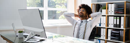 Successful African Businessman Leaning Back. Happy Employee