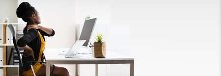 African Woman With Pain Back Bad Posture Problem In Chair