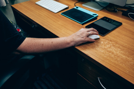 Designer using computer mouse and graphic tablet. Creative design and working concept. Close up
