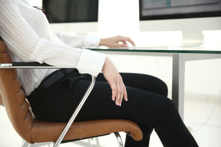Woman is using a computer with a bad posture