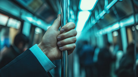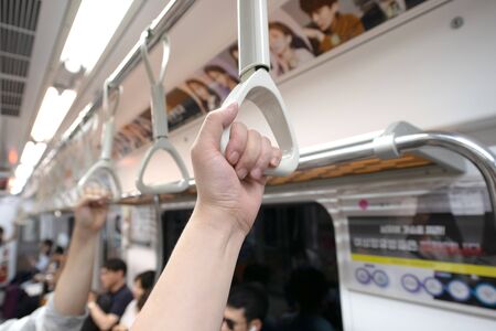 cropped view of aged man holding handrail in wagon of underground train