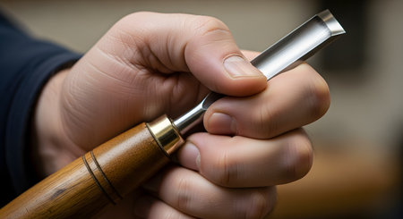 used wood lathe chisels on the wooden table.