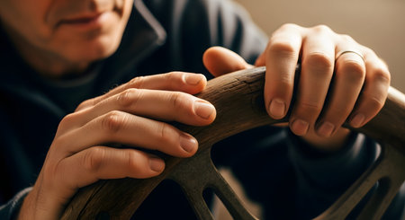 Close up view of male hand holding bicycle handlebar.