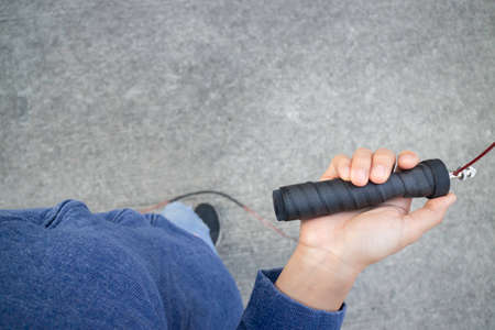 Hand of woman holding a speed jump rope, stock photo