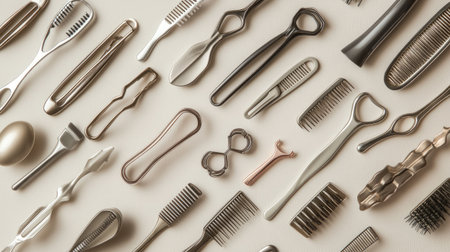 Chromed automotive tools, color lighting with selective focus. Postcard, poster, auto repair service. Cascade of objects.
