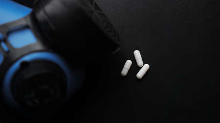 white pills over black background