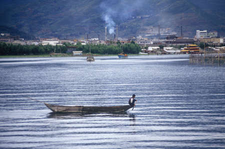 Fishing boat on Erhai Lake in Dali, Yunnan Province, People's Republic of China