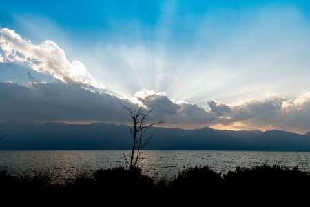 Lake sunset landscape in Dali, Yunnan province of China