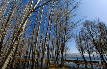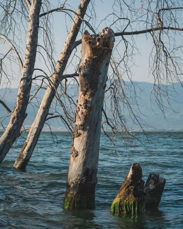 Flooded tree trunks after the heavy rains due to the global climate change