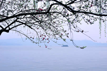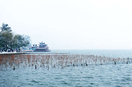 Landscape view of lake and pavilion in Hangzhou, China