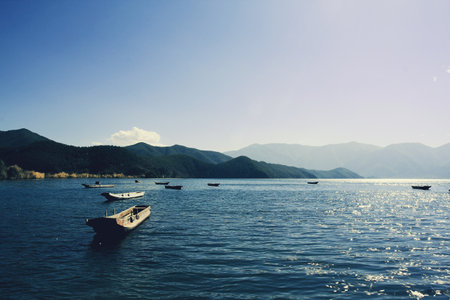 Scenic view at Lugu Lake in Yunnan, Lijiang, China