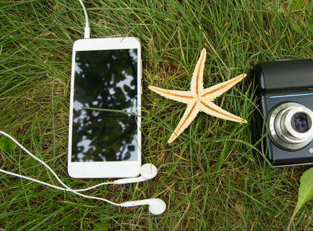 Plan your beach holidays and travel on the grass with the phone, headphones, starfish