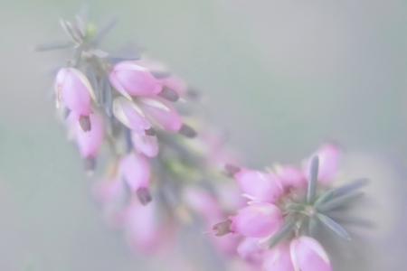Blooming heather pink full frame, defocused background. Plants for the Scandinavian garden