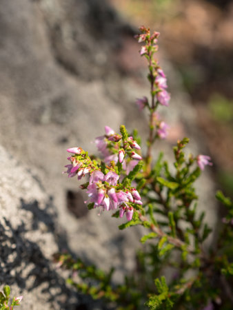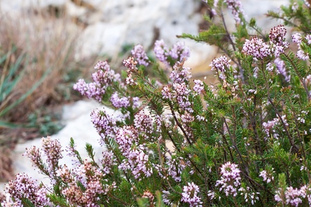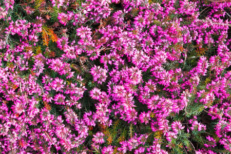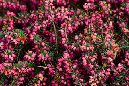 Closeup of fresh heather plant blooming in the autumn, outdoors