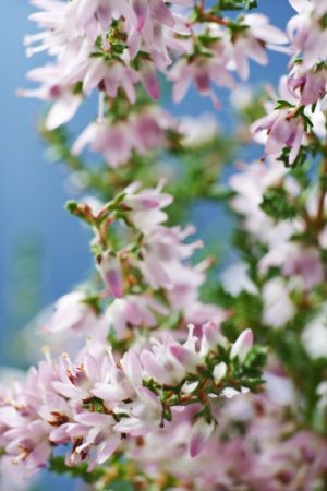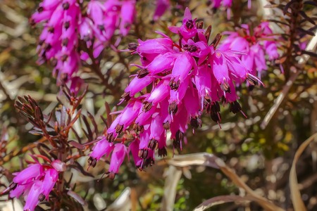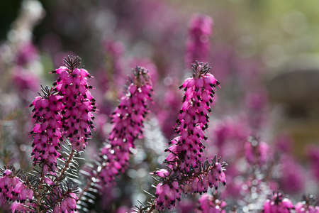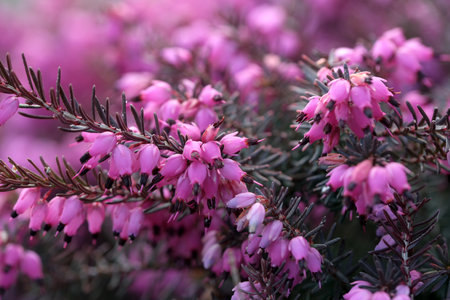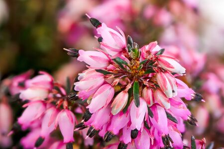 Macro of blossoms from a winter-flowering heather plant (erica carnea)