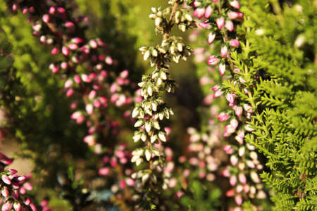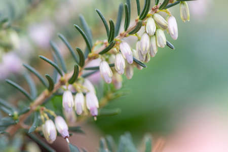 Delicate pink and white flower buds on a Heather plant