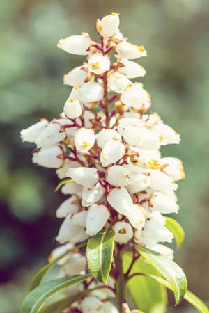 Close up of Japanese pieris (pieris japonica) flowers in bloom