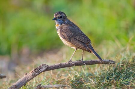 Bluethroat(Luscinia svecica),beautiful brown bird in meadow with green background.