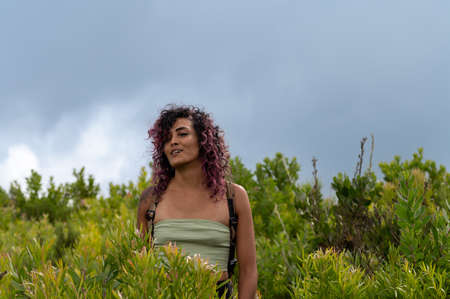 woman portrait in forest road outdoors