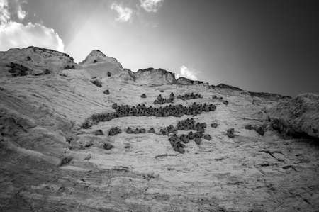 Cliff swallow mud homes built into the cliff face of Monument Rocks in rural Kansas, USA