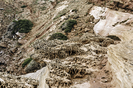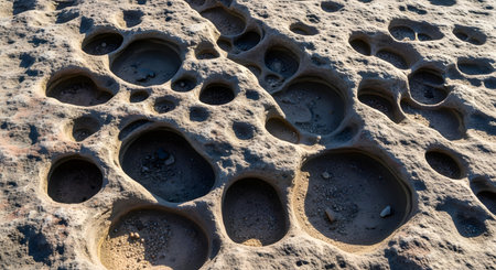 Captivating image of a rocky surface showcasing unique textures and patterns formed through natural erosion, creating an intriguing visual for nature lovers.