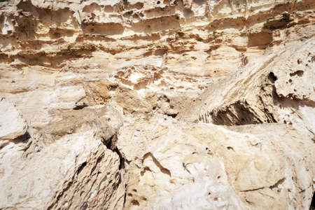 Surface sandy rock. Rocky shore of the Caspian Sea.