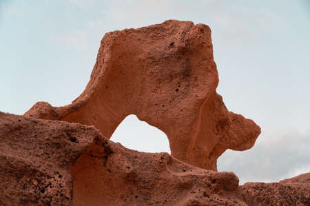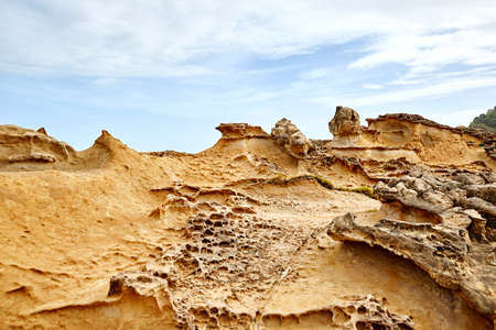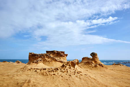 big brown natural rock with white sky as background at geopark TAIWAN.