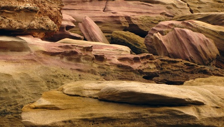 Colorful weathring detail of sandstone erosion. Was seen in New Zealand.