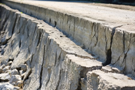 close-up of fault line, with visible cracks and tension, created with generative ai