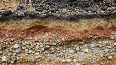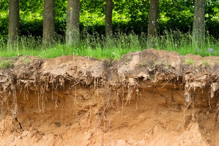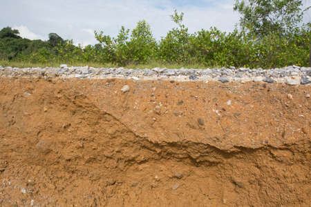 detail of layers of soil on a sand