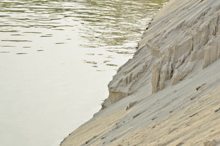 Beautiful sand slide and sand cliff near water