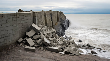 close-up of cracked and weathered concrete of a failed bridge, created with generative ai