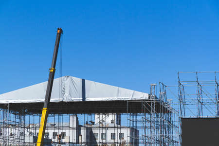Building construction site at sunny day, blue cloudy sky