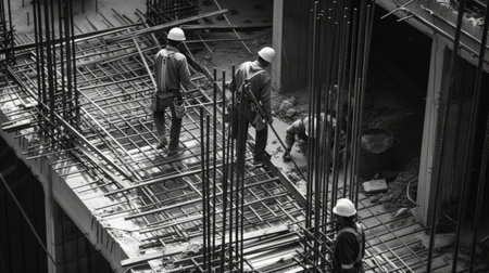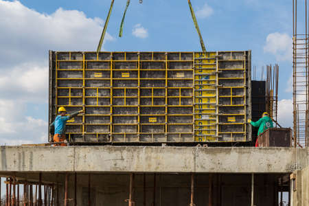 Construction workers work on high rise buildings, architecture